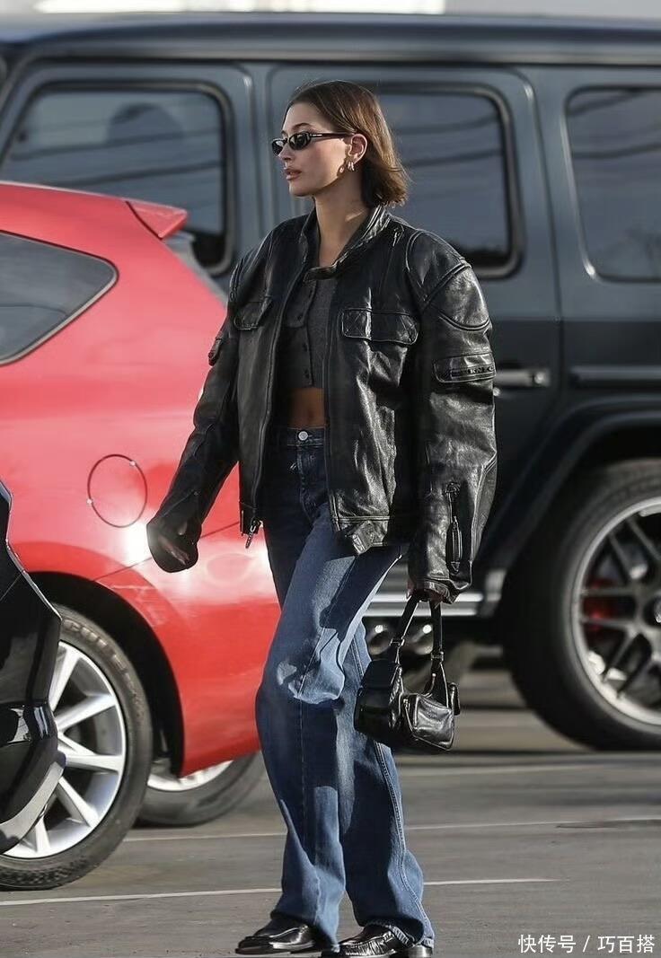 喜欢穿皮衣的海莉,并不是单纯的一衣多穿,而是把市面上所有皮衣款式都收入囊中了,这其中最常见的皮衣风格有以下五种。
