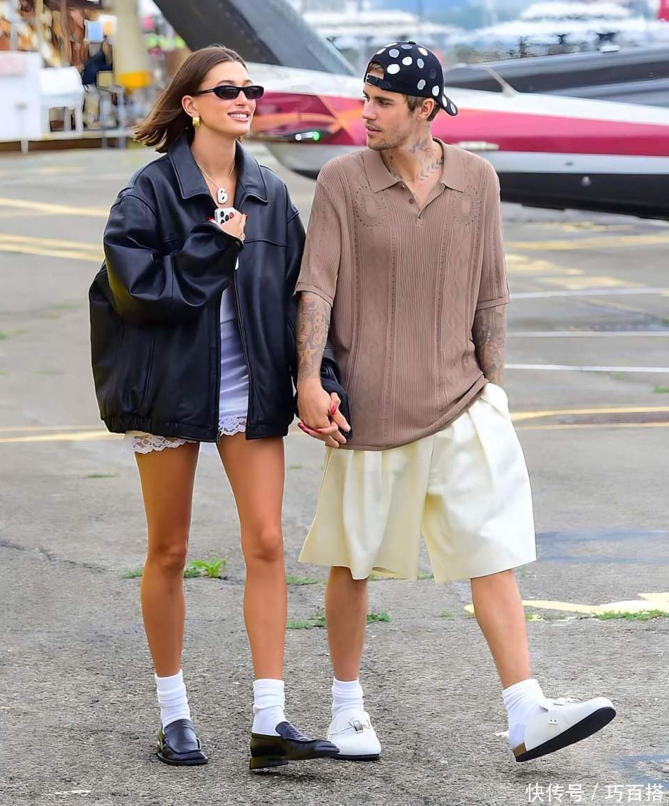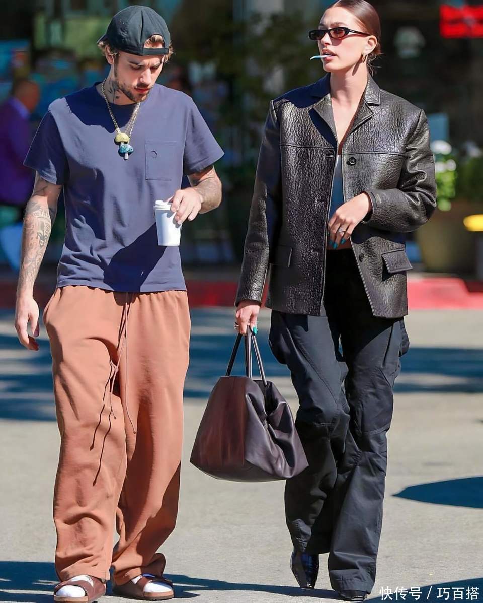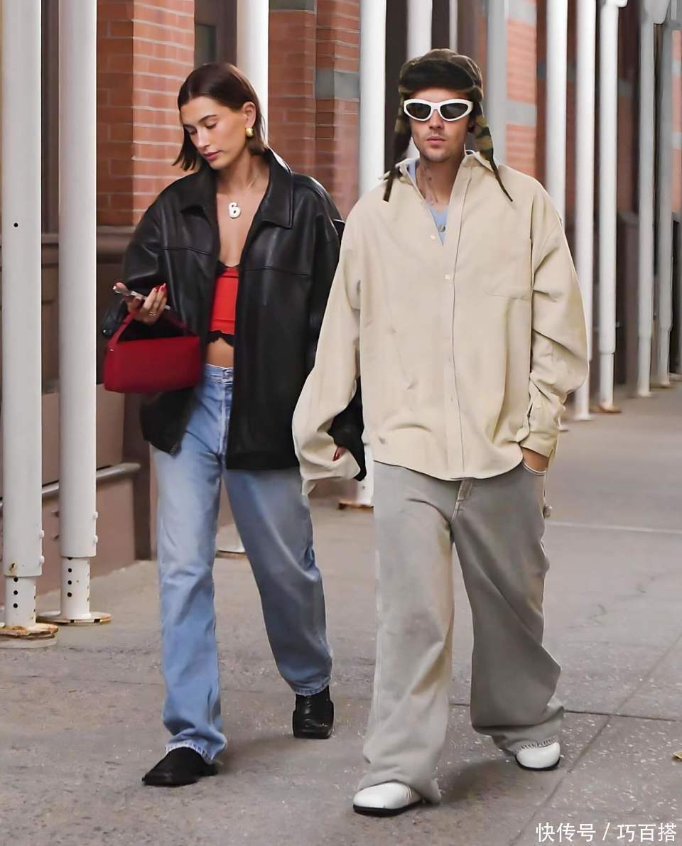 做旧款皮衣在氛围呈现上并不完全中性化,具体风格呈现和内搭息息相关,喜欢中性御姐风的姐妹,可以像海莉一样内搭黑色西装马甲,干净又利落。